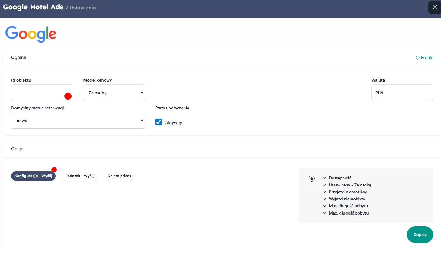 - Ceny na kanale Google nie mogą się różnić od tych w Booking Engine (Google weryfikuje rozbieżności i potraktuje je jako błędy).
