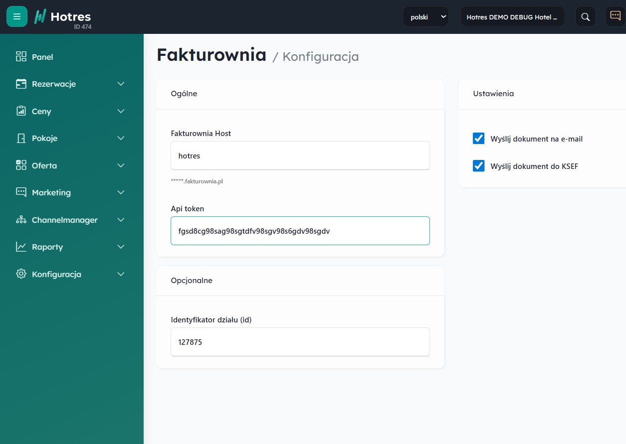 Integracja umożliwia tworzenie dokumentów w Hotres, które następnie można przesłać do Fakturowni , gdzie będą fiskalizowane lub wysyłane do KSEF. Fakturownia