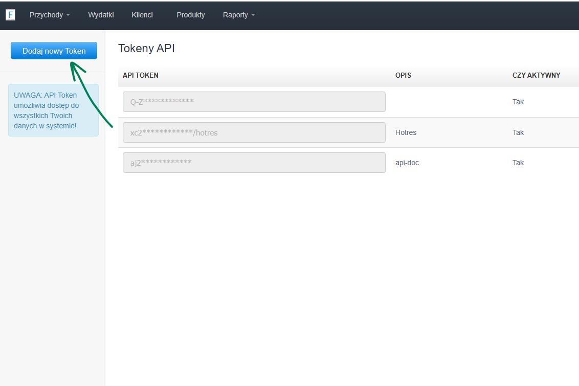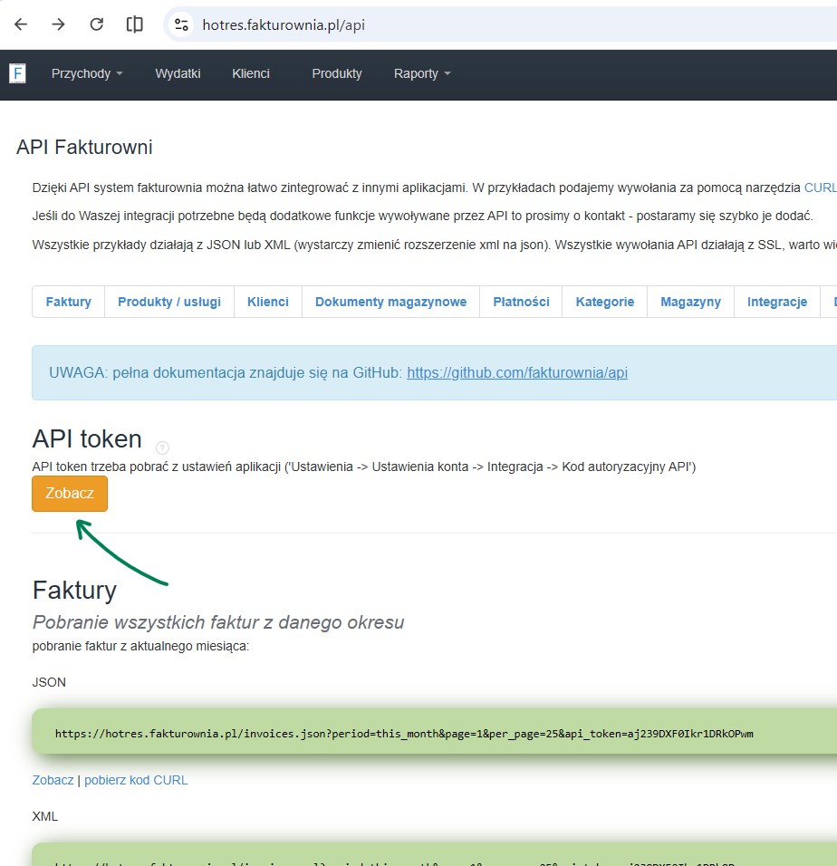 Do połączenia konieczne będzie wygenerowanie API Tokena.