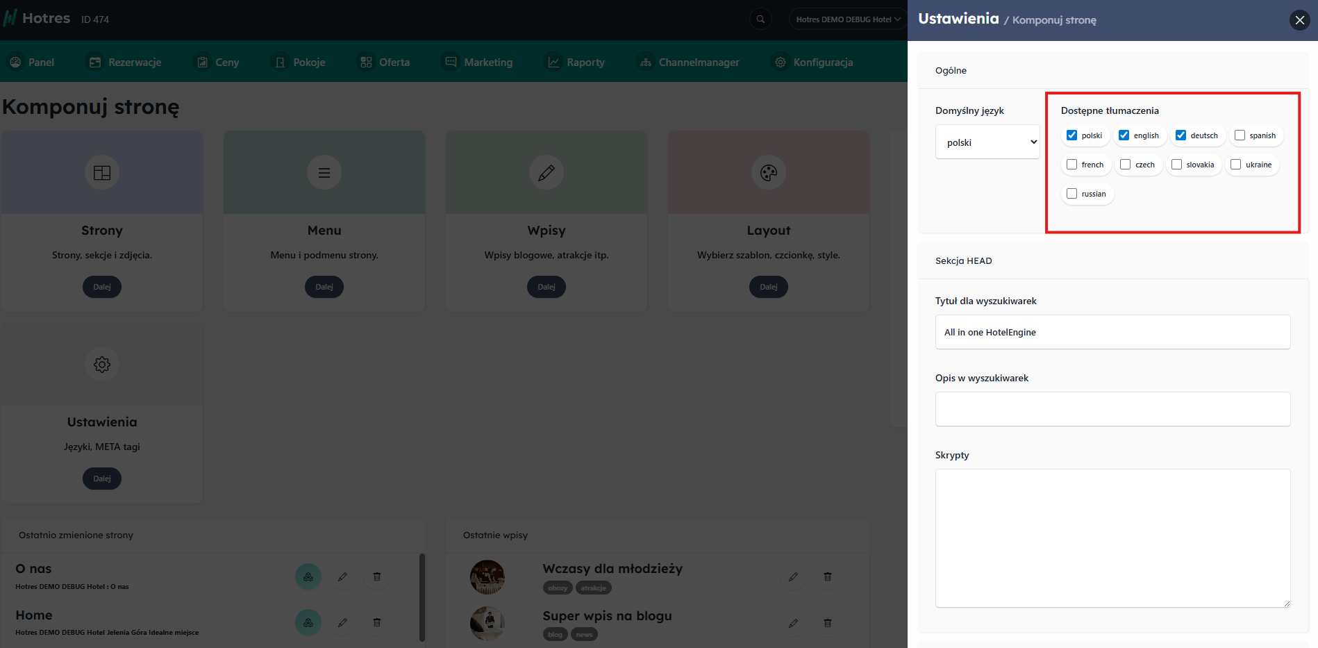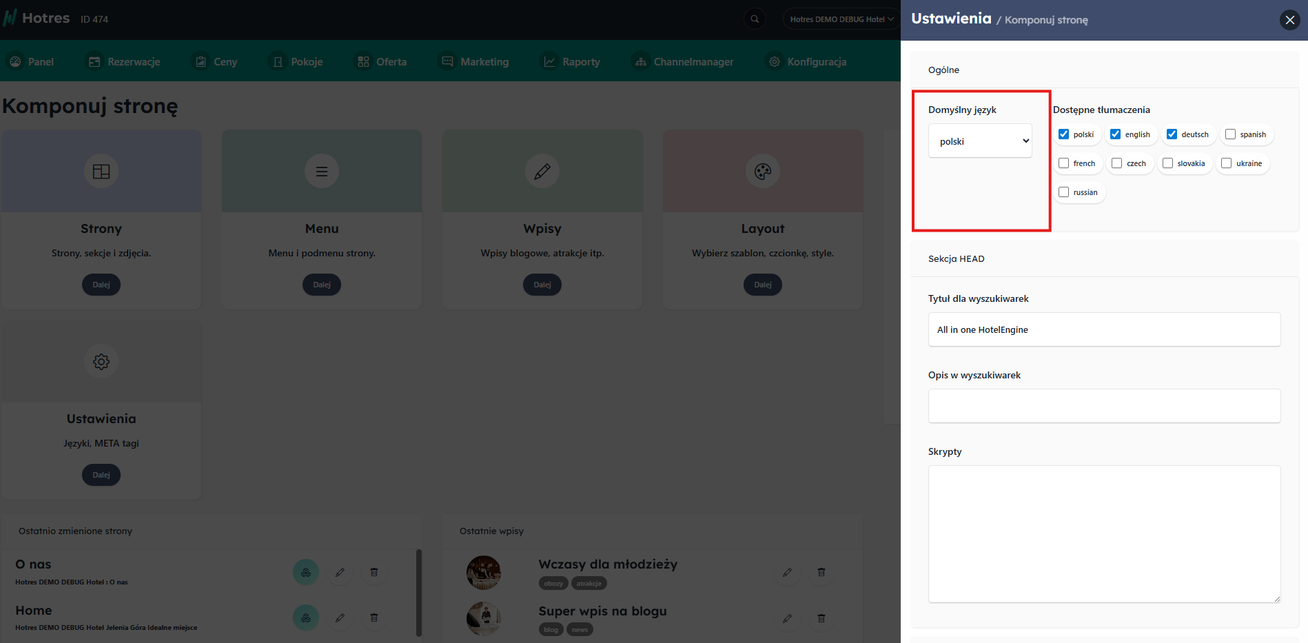Język – domyślnie ustawiony na polski